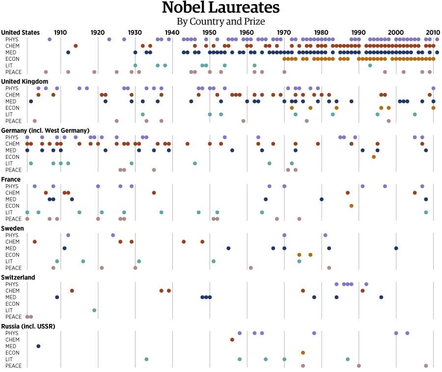 Nobelio premijų pasiskirstymai pagal šalis >>>
